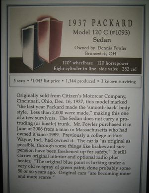 Automobil je prodan od Citizen"s Motorcar Company, Cincinnati-Ohio, 16. prosinca 1937. godine. Ovaj model je bio označen tada kao "prošlogodišnji