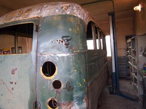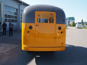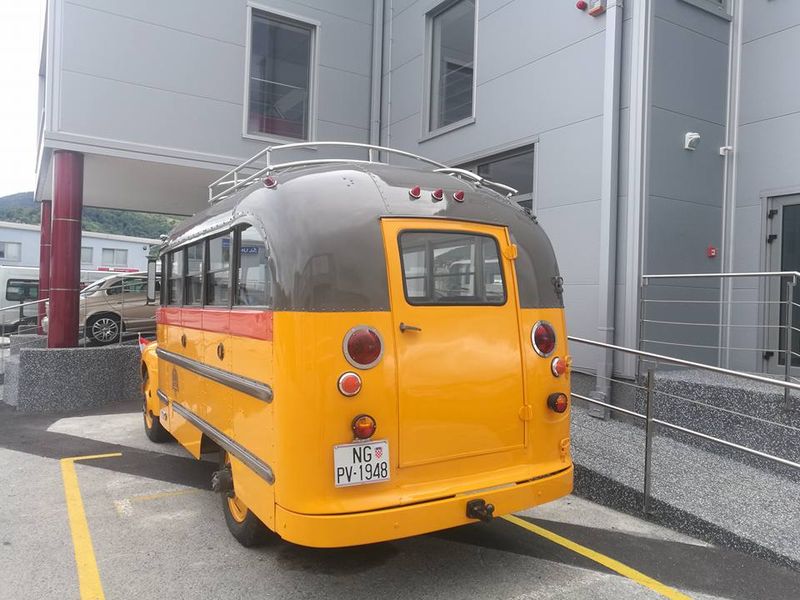 Zanimljivo je da ima vrata za vozača i putnike s desne strane a vrata otraga služila su za izlazak u nevolji. Ima otraga stepenice za prtljažnik na krovu.