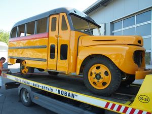 Ovaj mali školski bus sam našao na jednom otpadu automobila u Minesoti, USA . Nije bio u sjajnom stanju ali je bio vrlo atraktivan pa sam ga kupio i